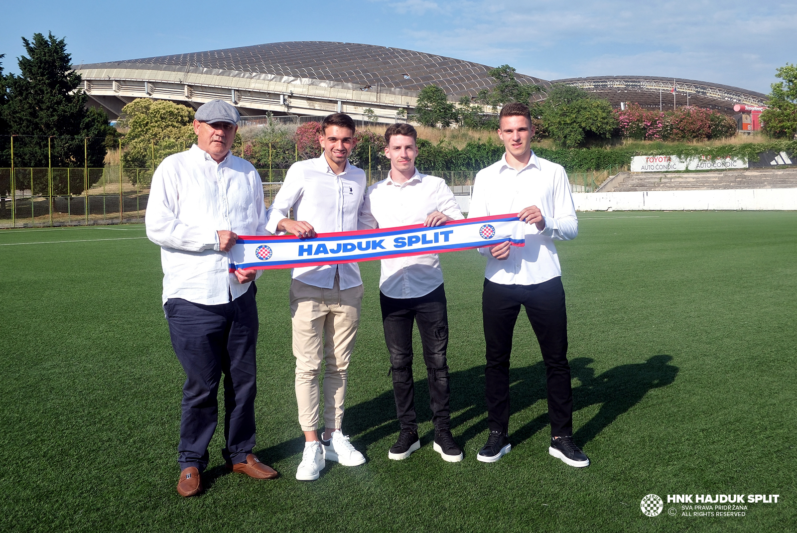 HNK Hajduk danas je potpisao ugovore s trojicom talentiranih igrača i tako nastavio s aktivnom politikom ulaganja u klupsku budućnost. Dominik Babić stigao je na Poljud nakon što mu je istekao ugovor s Osijekom, a Lovre Lončar i Duje Milišić potpisali su ugovore s Klubom. Babić i Milišić potpisali su ugovore do ljeta 2028. godine, a Lončar do ljeta 2027. godine.