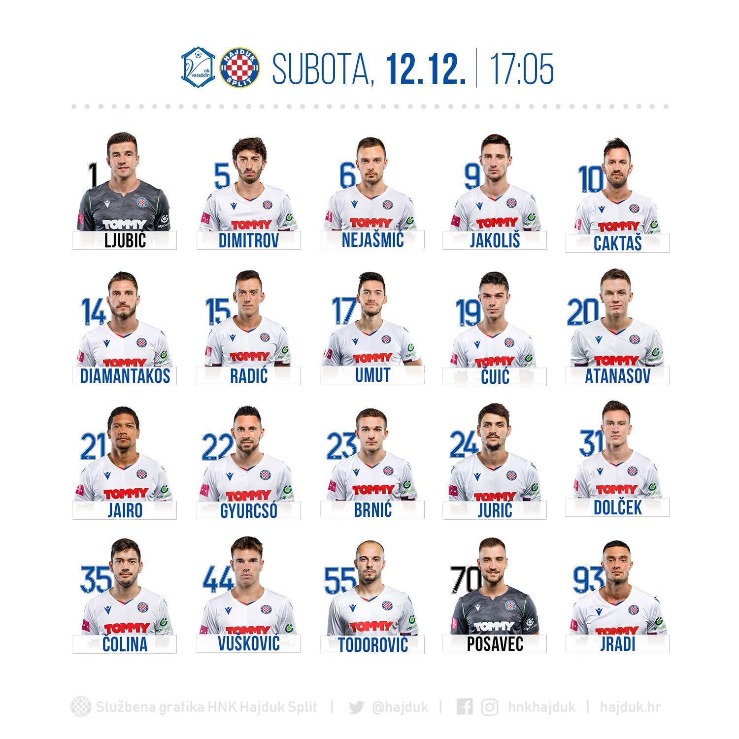 Nogometaši Hajduka krenuli su na put prema Varaždinu gdje će u subotu s početkom u 17.05 sati igrati utakmicu 15. kola HT Prve lige protiv Varaždina.