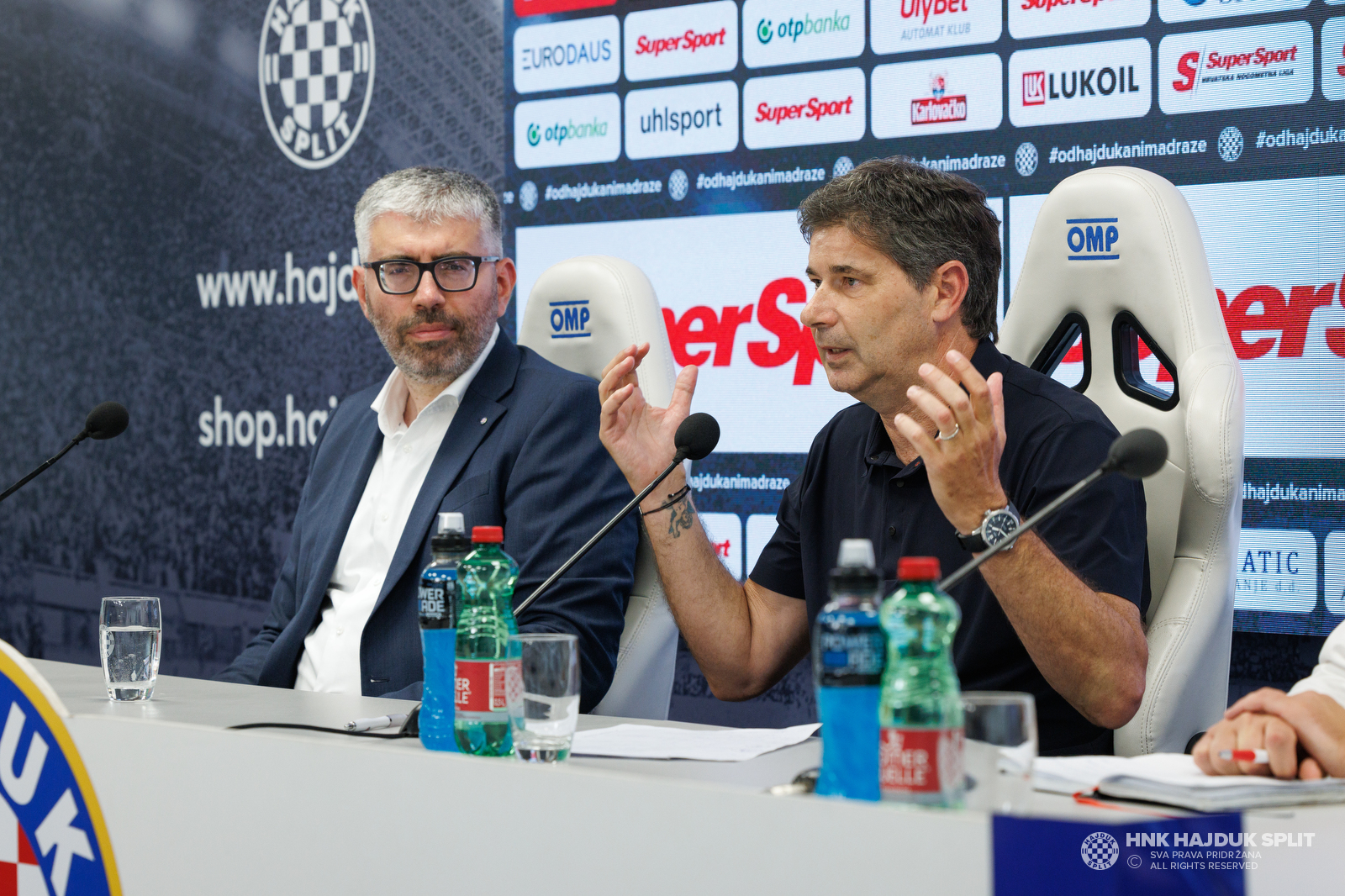 - Nakon prethodnog mandata u Hajduku, radio sam u Barceloni, ne samo kao scout nego i puno više od toga, što mi je donijelo velikom najupečatljivije iskustvo u karijeri i – vjerujem – pomoglo da još kvalitetnije radim svoj posao. Nakon Barcelone, jednako vrijedno bilo je razdoblje rada u Saudijskoj Arabiji, svi znate koliko se razina nogometa podigla u toj zemlji i približila europskim standardima. Nakon toga sve bio sam zaista iscrpljen te odlučio vratiti doma u Split, pogotovo zbog obitelji koja mi je jako nedostajala dok sam boravio u inozemstvu. I onda je došao poziv Hajduka, kojem se, iskreno, nisam nadao. U proces mog povratka bilo je uključeno puno ljudi, našli smo se zaista na istom valu, istim idejama. Prvi korak na novom, dugom putu je stabilizacija, a ne ciljevi, maksimalan zajednički rad, u kojem se dobro zna hijerarhija. Na prvom mjestu je Hajduk, na drugom igrači, na trećem navijači, bez kojih ništa ne bi imalo smisla. Dakle, prvo stabilnost kluba, kako bismo mogli što prije doći do rezultata, a jako dobro znam koliko smo svi iscrpljeni nakon proteklih sezona u kojima se nije uspijevalo doći do ostvarenja snova. Nije to floskula, „Više od kluba“, Hajduk je to zaista, velika familja, a podsjetio bih na sjajnu rečenicu Slavena Bilića „tako veliki klub u tako malom gradu“. I zato je na svima nama da Hajduk ponovo bude klub dostojan svoje slavne povijesti.