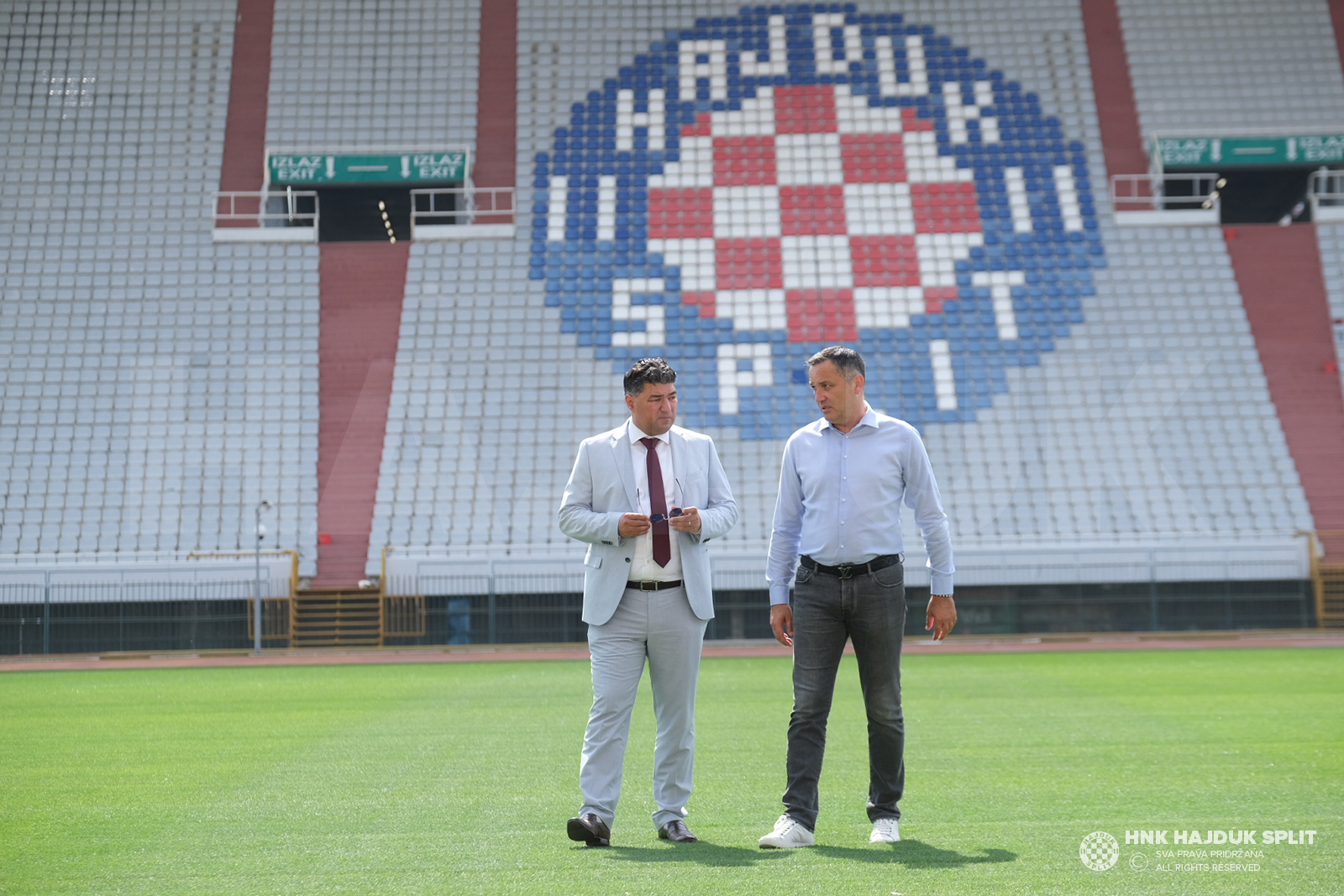 Danas je na Poljudu obavljena primopredaja u sklopu postavljanja novog hibridnog travnjaka najnovije generacije na glavnom terenu. Član Uprave Ivan Matana službeno je preuzeo travnjak od strane delegacije Hrvatskog nogometnog saveza predvođenom izvršnim direktorom Marijanom Kustićem.