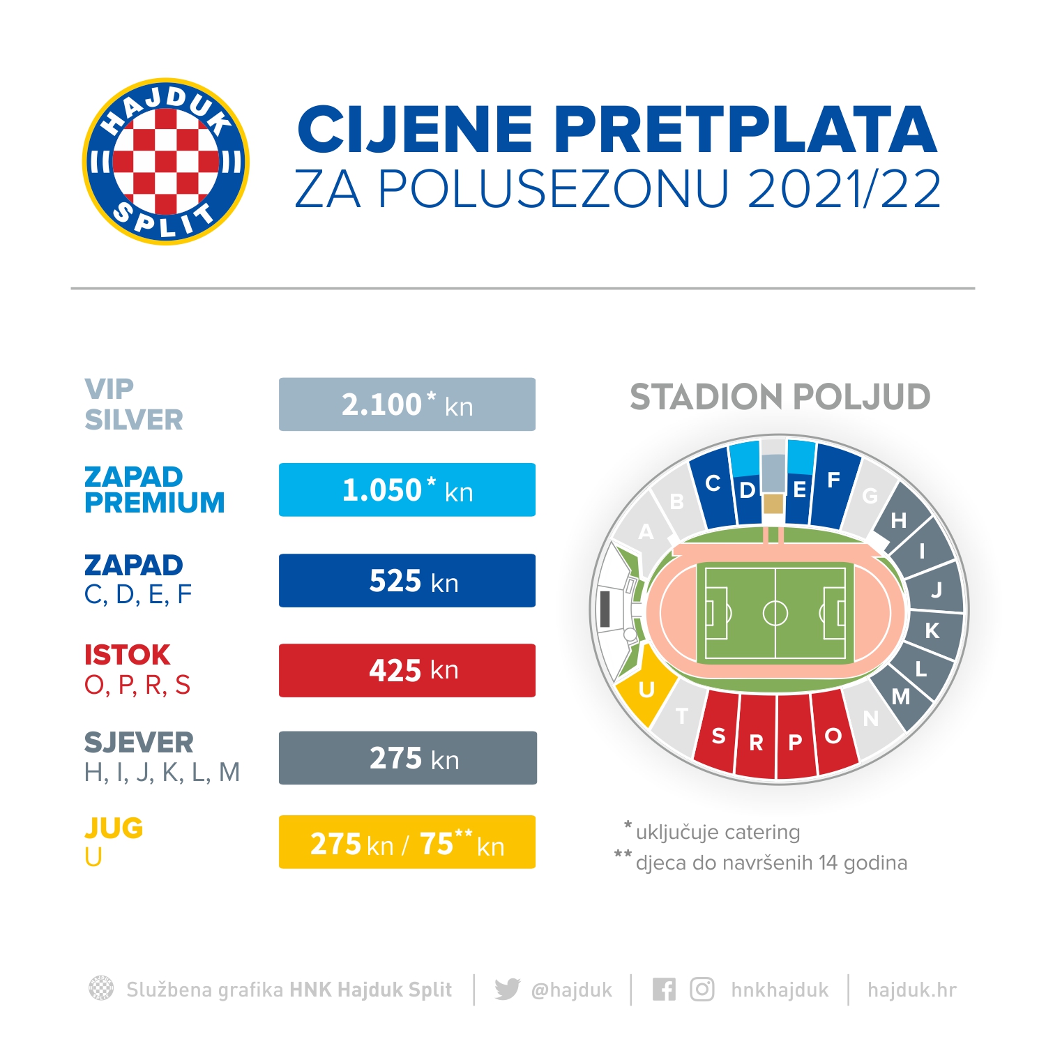 Kupnjom polusezonske pretplate osiguravate sebi mjesto za utakmice HT Prve lige te utakmice Hrvatskog kupa (osim finala) koje se u organizaciji HNK Hajduk Split održavaju na Poljudu, u natjecateljskoj sezoni 2021/2022.