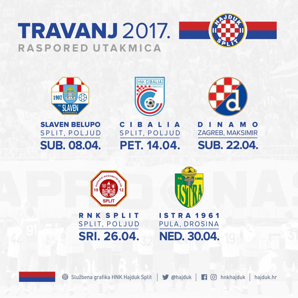 Prvi na rasporedu je susret s Slaven Belupom koji se igra u subotu 8. travnja s početkom u 15 sati, dok će šest dana kasnije momčad Joana Carrilla odmjeriti snage s Cibalijom. Ogled s Vinkovčanima se igra u petak 14. travnja, a početak susreta zakazan je za 18 sati.