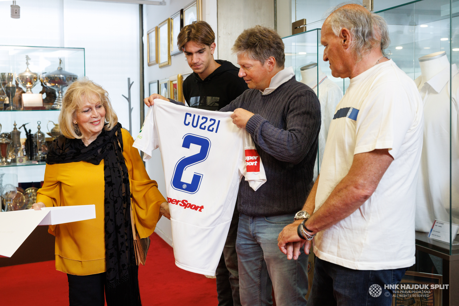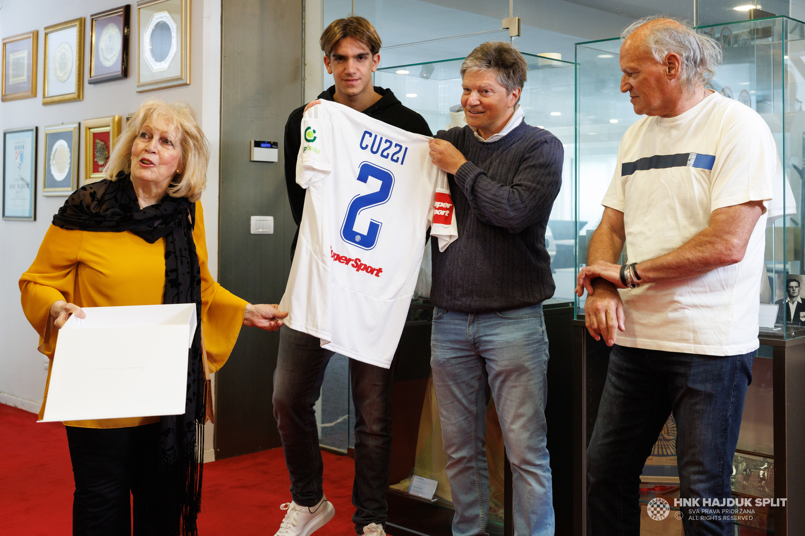 Na završetku svečanosti, predsjednik Ivan Bilić poklonio je obitelji Cuzzi, supruzi Ranki, sinu Ivi i unuku Duji dres Hajduka sa njegovim brojem 2. Koji od danas ima svoje počasno mjesto točno tu gdje i pripada, u ovom Trofejnom salonu, Hajdukovoj Kući slavnih.