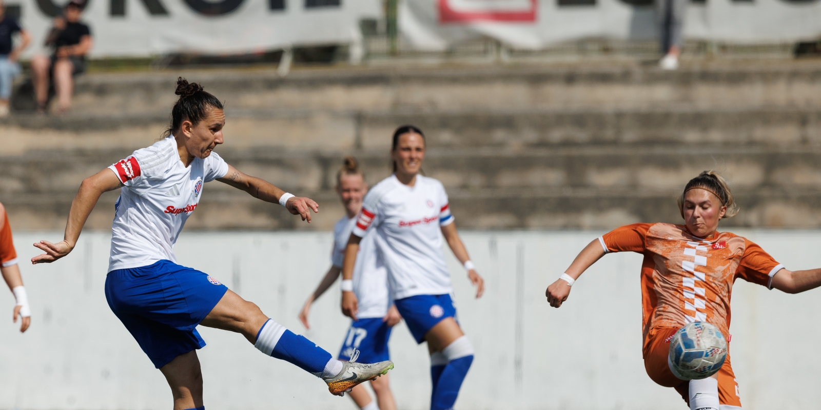 Nogometašice Hajduka plasirale su se u finale Hrvatskog nogometnog kupa nakon što su na Poljudu pobijedile vodeću ekipu u ligaškom natjecanju, zagrebački ŽNK Agram s 3:2, dok su Osječanke u polufinalu pobijedile ŽNK Međimurje s 2:0.