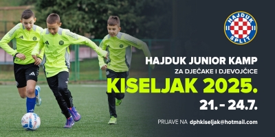 "Hajduk junior kamp Kiseljak 2025"Kamp će se održati od 21. do 24. srpnja 2025. Četvrtak, 3. srpnja 2025. - 19:47 sati