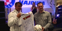 Održana "Bila noć za Hajduka" u zagrebačkoj PanoramiTrener Damir Burić darovao je dres i loptu s potpisima igrača tajniku DPH Zagreb Mati Kukavici Subota, 14. svibnja 2016. - 08:59 sati