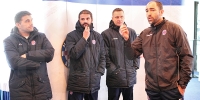 Uz tradicionalni pozdrav navijača s Hvara Bijeli počeli pripreme...Hajdukovci su radili u poljudskoj dvorani pa potom na pomoćnom travnjaku... Srijeda, 7. siječnja 2015. - 13:50 sati